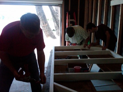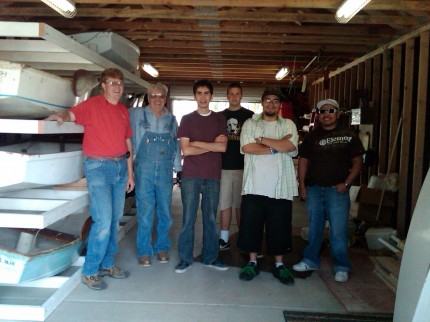Today Jacob lead his team of hard workers in the construction phase. A few pieces of lumber needed to be cut for the corner braces. However, the majority of the work was screwing the Sabot racks together. After 5 hours and a lot of pushing to keep the bit in the screw head with an equal amount of pushing from the other side the job was finished.